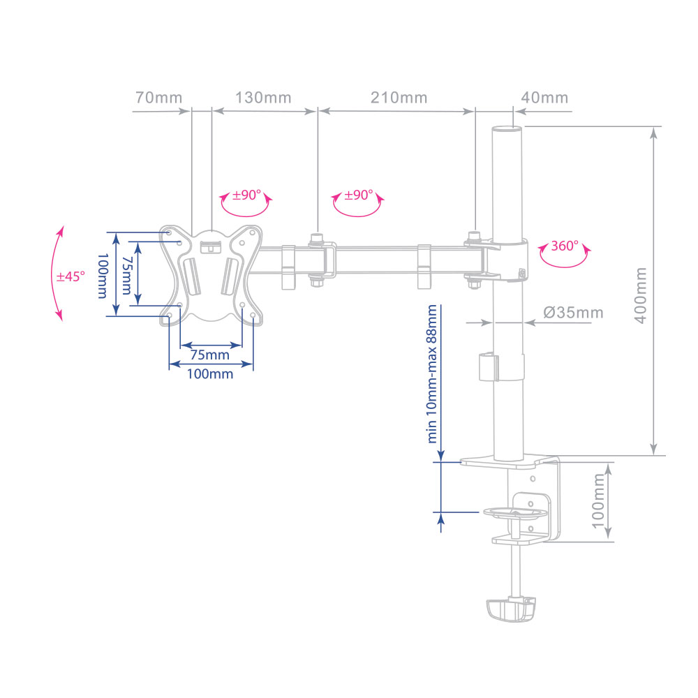 Особенности: Регулируемое по высоте крепление. Мощная стальная конструкция. Кабель-каналы. Съемная монтажная пластина. Надёжное крепление к столу