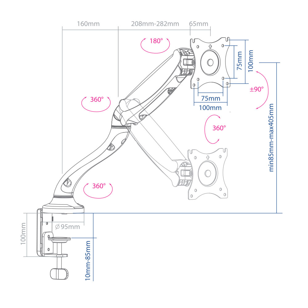 Назначение: кронштейн наклонно-поворотный настольный