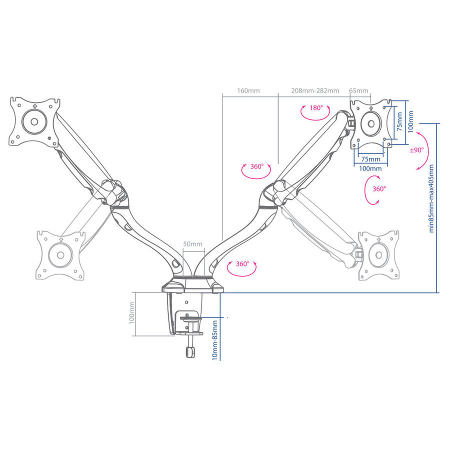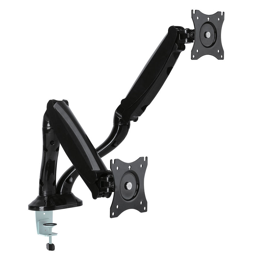 Описание: Независимая регулировка каждого экрана — мониторы на кронштейнах можно поворачивать вокруг совей оси на 360°, наклонять вверх и вниз, придвигать или удалять от себя. Два варианта установки на столешницу: за край стола и на поверхность стола.