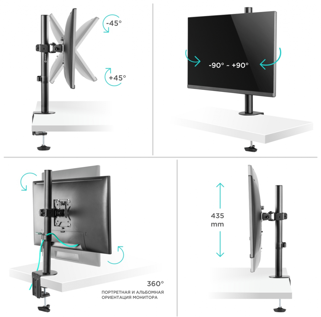 Тип крепления: наклонное, поворотное, с регулировкой высоты