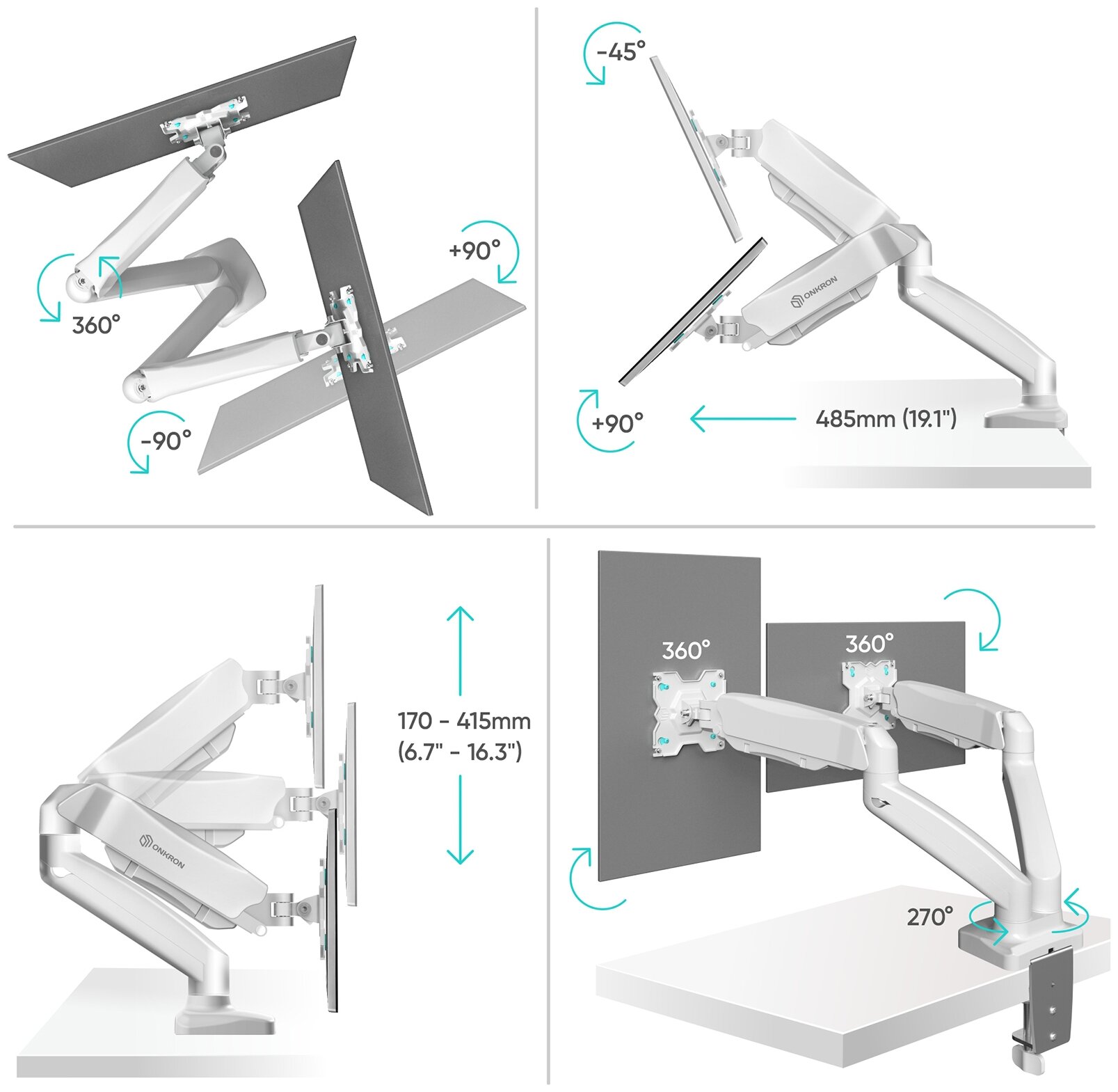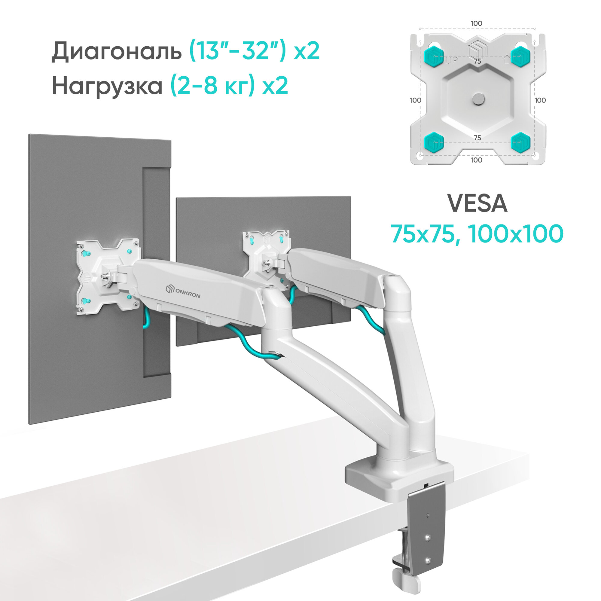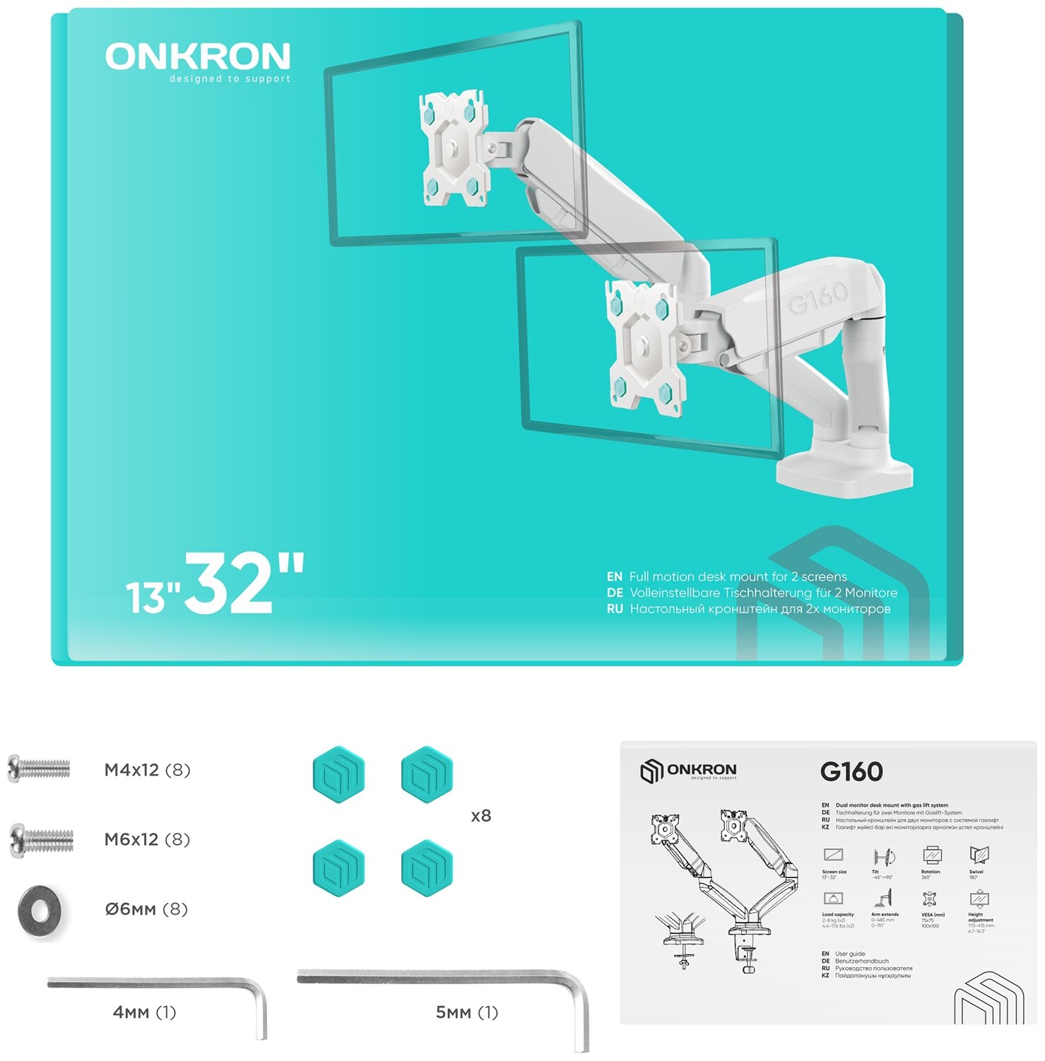 Кронштейн ONKRON G160W для мониторов белый 13"-32" макс.16кг настольный поворот и наклон верт.перемещ.