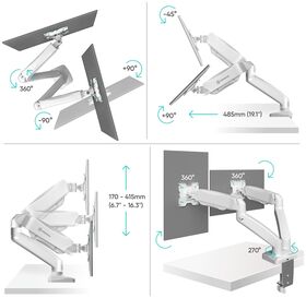 Вылет от основания: 0~470 мм, вертикальное перемещение: 170~410 мм, портретная/альбомная ориентация экрана, установка: на краю стола, в стол