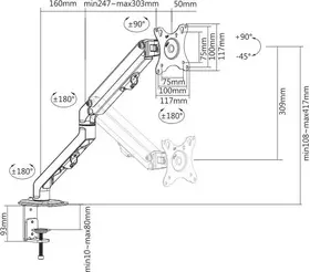 Настольный кронштейн для монитора с системой газ-лифт. Пружинный механизм позволяет легко перемещаться вверх и вниз.