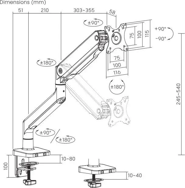 -90/+90 °