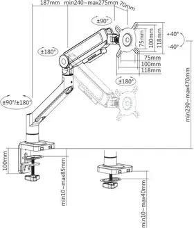 Настольный кронштейн для монитора с системой газ-лифт. Встроенный пружинный механизм натяжения поможет для идеальной регулировки веса.