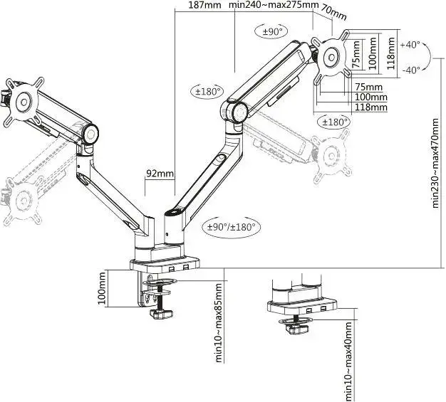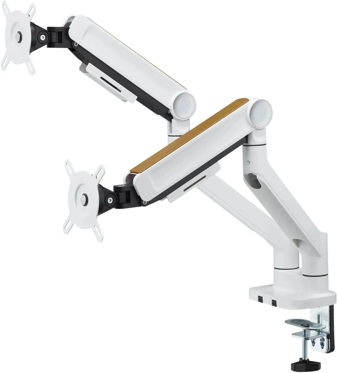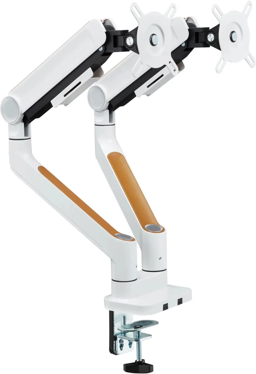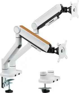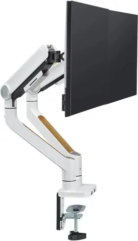 Плавная регулировка положения монитора обеспечивается благодаря системе газлифтов, а пружинные механизмы равномерно распределяют вес мониторов, предотвращая их перегрузку и возможную деформацию креплений.