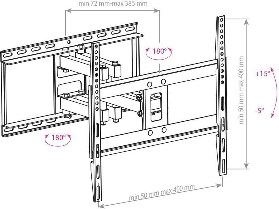 Описание Усиленная стальная конструкция. Универсальный — телевизор на кронштейне можно наклонить, повернуть и сдвинуть к стене. Широкая монтажная пластина обеспечивает надежное крепление ТВ на стену. Легкий монтаж.