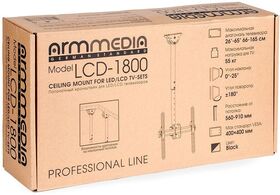 Описание: Потолочный кронштейн для LCD/LED телевизоров размером от 26 до 65 дюймов с максимальным весом до 50 кг. с возможностью крепления на наклонный потолок. Надежная стальная конструкция. Регулировка наклона 0-25 и углом поворота ±180 градусов. Максимальные крепежные размеры 400×400 мм.
