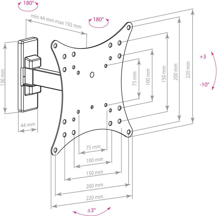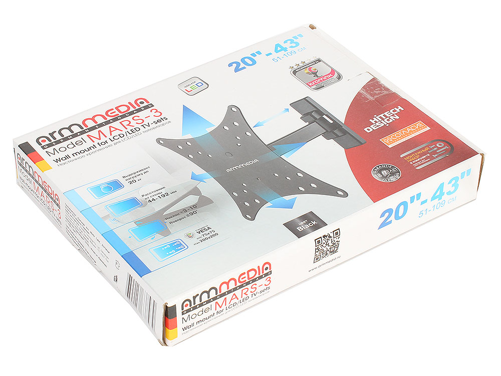 Поддержка крепления VESA 75×75, 100×100, 200×200