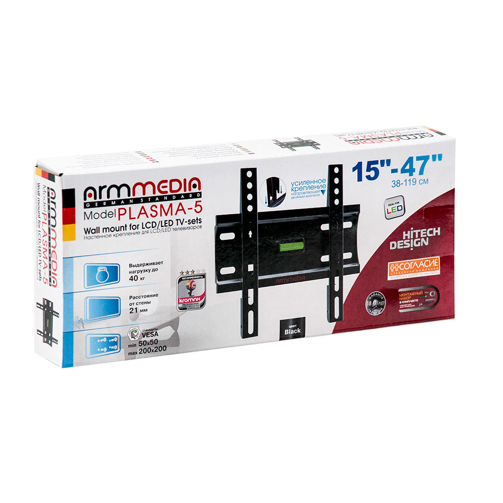 Поддержка крепления VESA 50×50, 75х75, 100х100, 200х100, 200×200