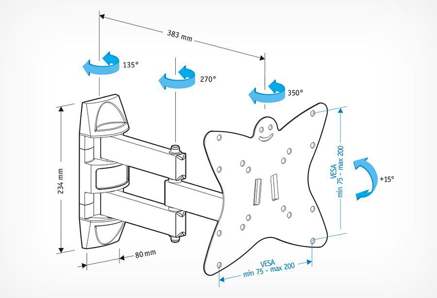 Поддержка крепления VESA 75×75, 100×100, 200×100, 200×200