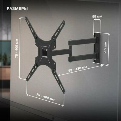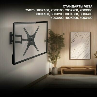 Стандарт Vesa: 75х75 мм, 100х100 мм, 100х200 мм, 200х100 мм, 200х200 мм, 200х300 мм, 300х100 мм, 300х200 мм, 400х200 мм, 300х300 мм, 300х400 мм, 400х300 мм, 400х400 мм;