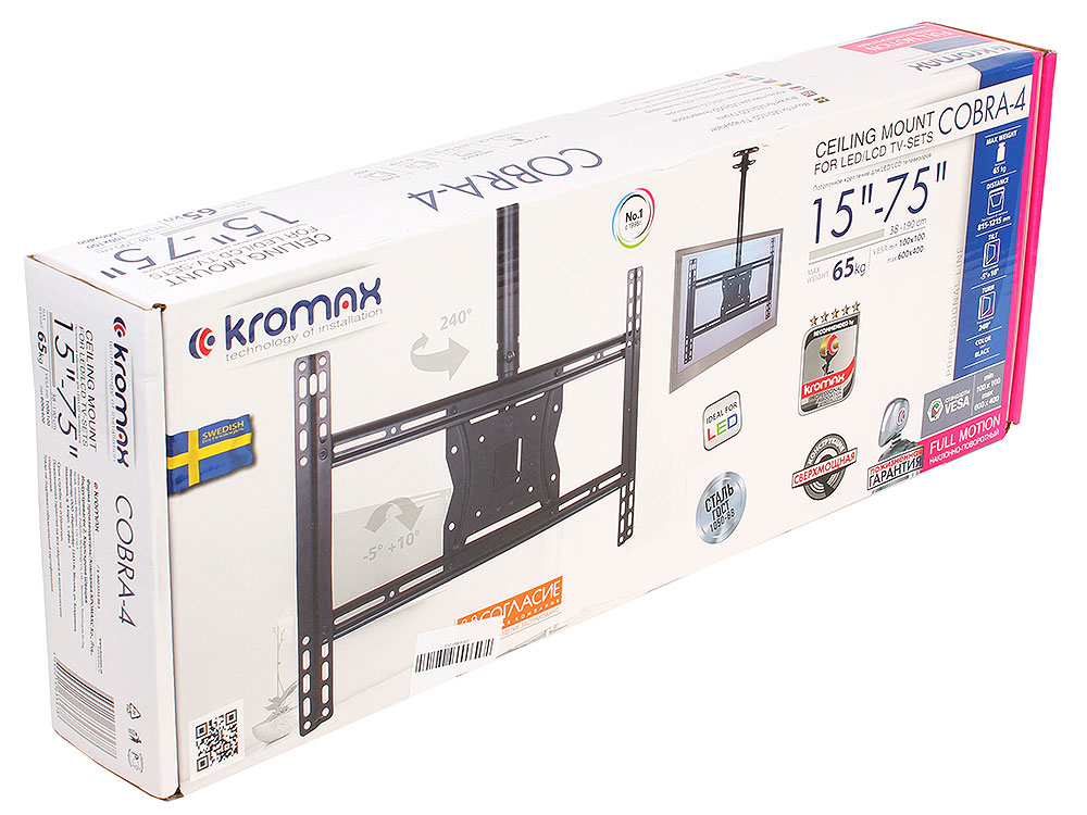 Особенности: Возможность крепления к наклонному потолку. Надежная стальная конструкция. Кабель-канал. Максимальная степень подвижности. Легкая регулировка