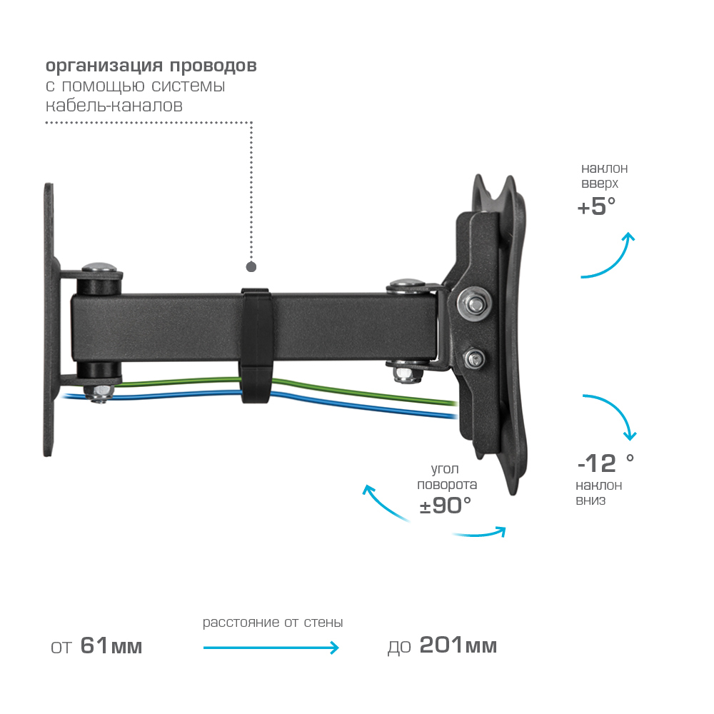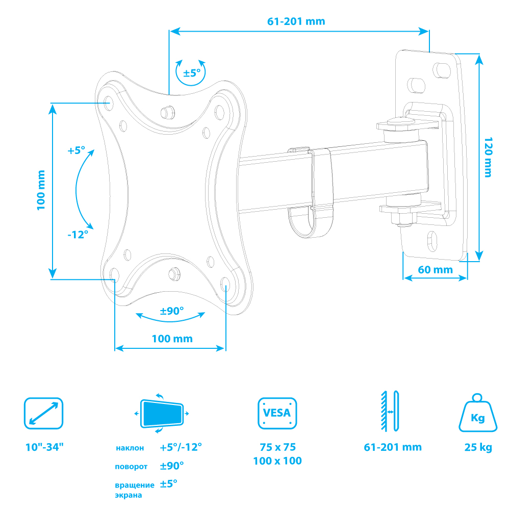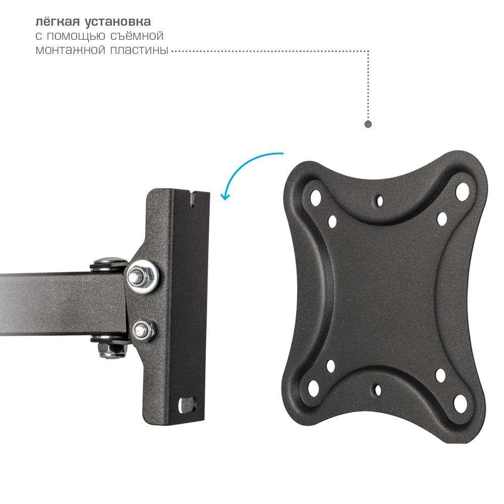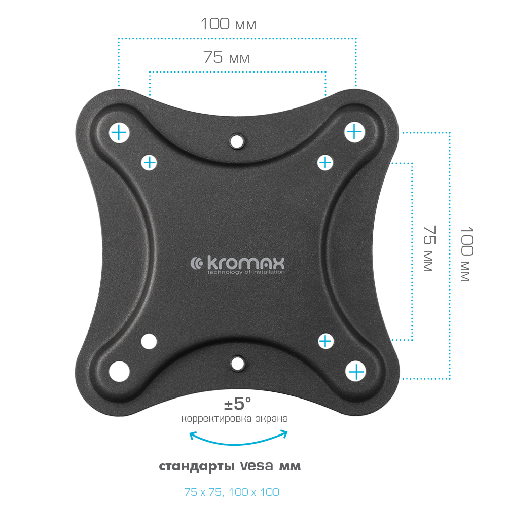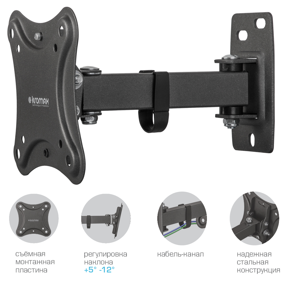 Универсальная система крепления, Легкий монтаж при помощи съемной монтажной пластины, Вращение экрана уникальная возможность вращения экрана на ±5° относительно стены, Надежная стальная конструкция максимальная нагрузка до 25 кг
