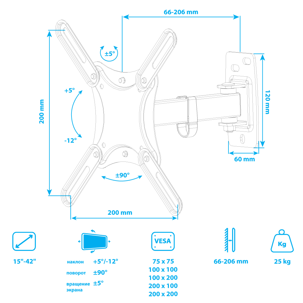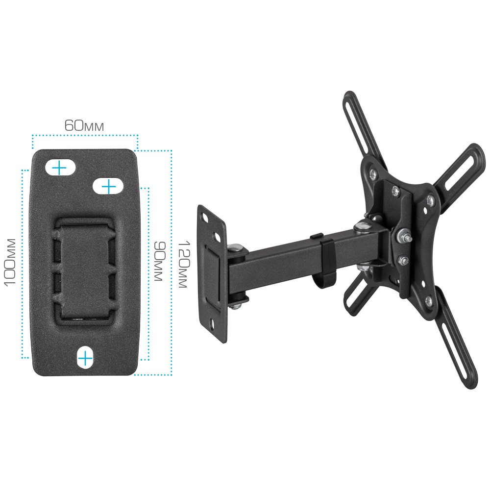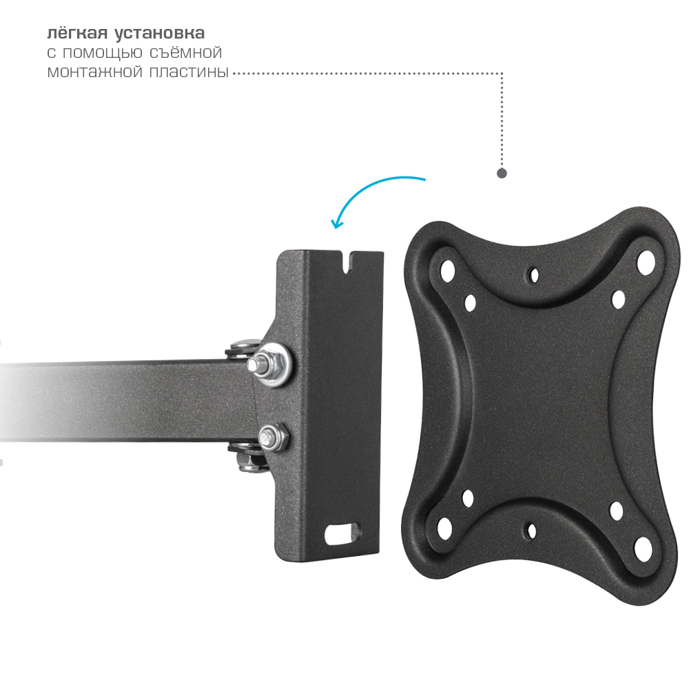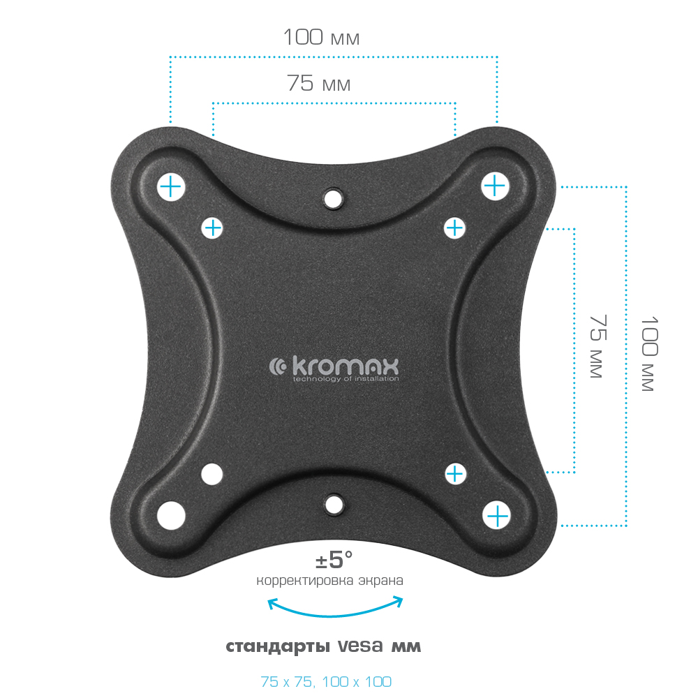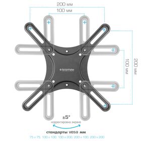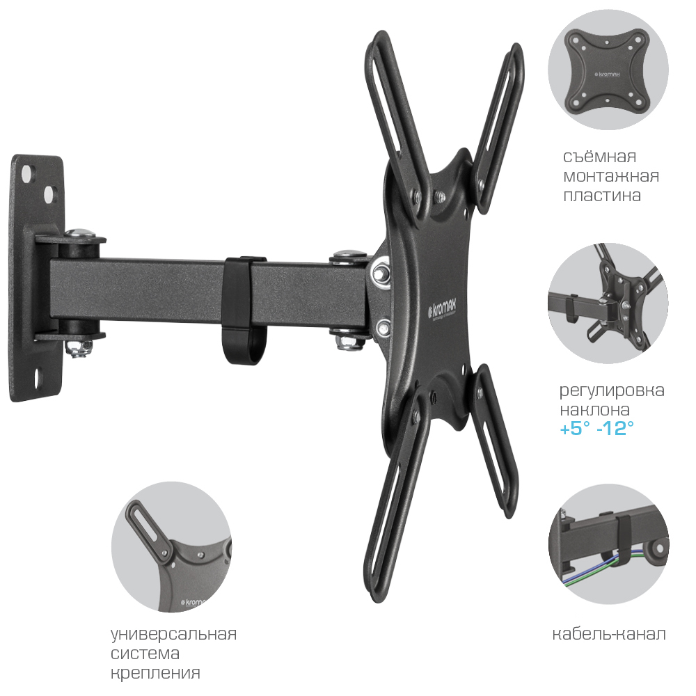 Универсальная система крепления, Легкий монтаж при помощи съемной монтажной пластины, Вращение экрана уникальная возможность вращения экрана на ±5° относительно стены, Надежная стальная конструкция максимальная нагрузка до 25 кг, Кабель-канал