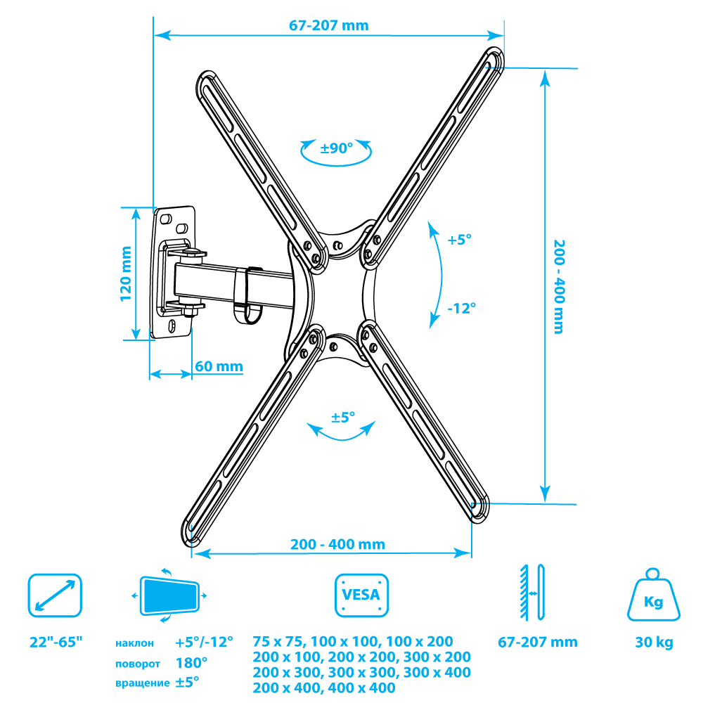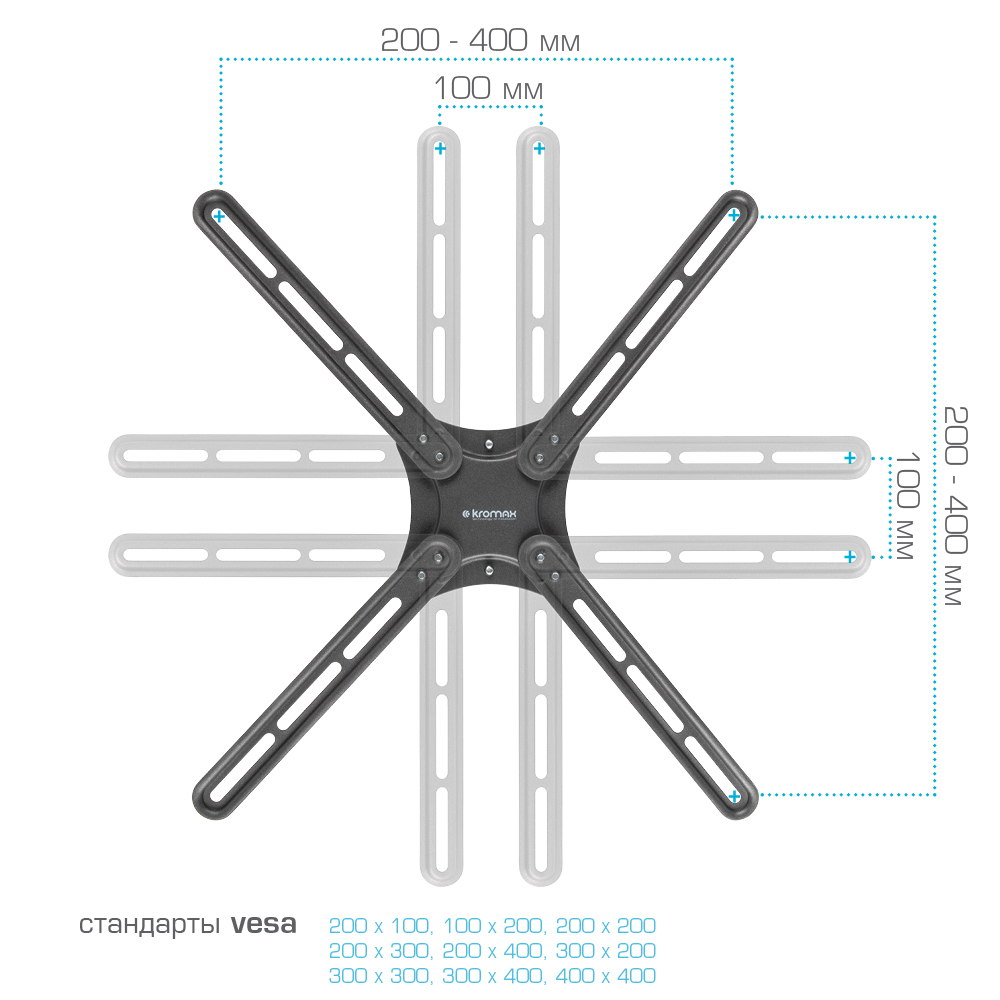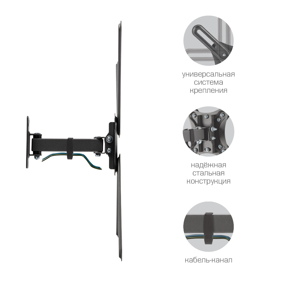 Универсальная система крепления, Легкий монтаж при помощи съемной монтажной пластины, Вращение экрана уникальная возможность вращения экрана на ±5° относительно стены, Надежная стальная конструкция максимальная нагрузка до 30 кг, Кабель-канал