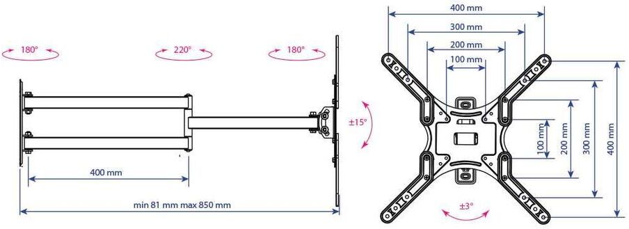 Расстояние от стены/потолка (макс) 85 см