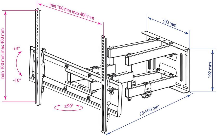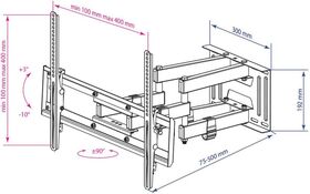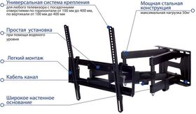 Описание Мощная стальная конструкция. Встроенный водяной уровень. Простой и легкий монтаж. Кабель-канал. Широкое настенное основание.