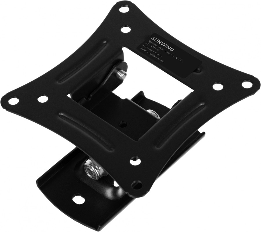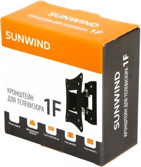 Кронштейн Sunwind 1F позволяет поворачивать и наклонять закрепленный на нем телевизор. Для цветовой гармонии настенное приспособление выкрашено в черный цвет, поскольку нынче большинство моделей телевизоров изготавливается с черными корпусами. Металлоконструкция поддерживает такие стандарты крепления VESA, как 75 х 75 и 100 х 100. Телевизор с массой до 15 кг и диагональю экрана в диапазоне 20-29 дюймов в процессе эксплуатации можно наклонять на угол -5/+15 градусов, а также поворачивать на угол -45/+45 градусов. Минимальная дистанция от стеновой либо потолочной поверхности – 58 мм. При поиске подходящего места для установки следует делать акцент на несущих способностях стены.