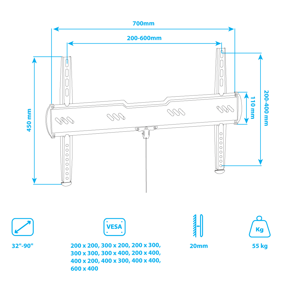 Универсальная система крепления, Мощная стальная конструкция, Легкий монтаж, Минимальное расстояние от стены 20 мм