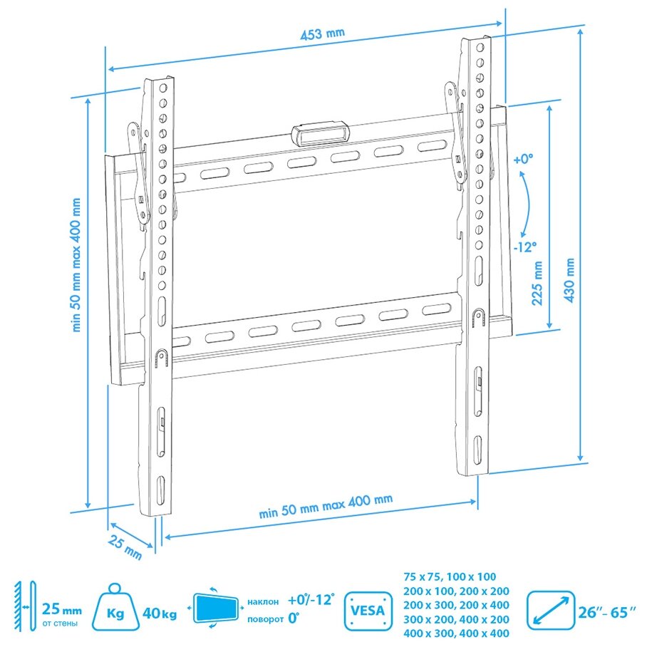 расстояние от стены 26 мм, угол наклона -12° 0°