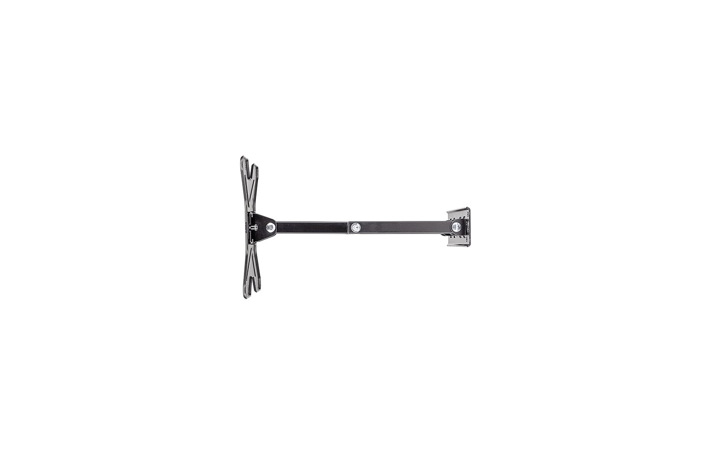 Вылет от стены настраивается в диапазоне 50-360 миллиметров. Узкая пристенная площадка позволяет устанавливать кронштейн даже в углу помещения.