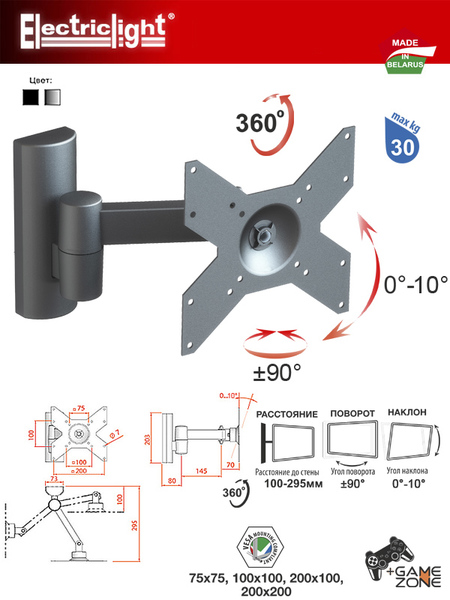 VESA 75х75; VESA 100х100; VESA 200х100; VESA 200х200