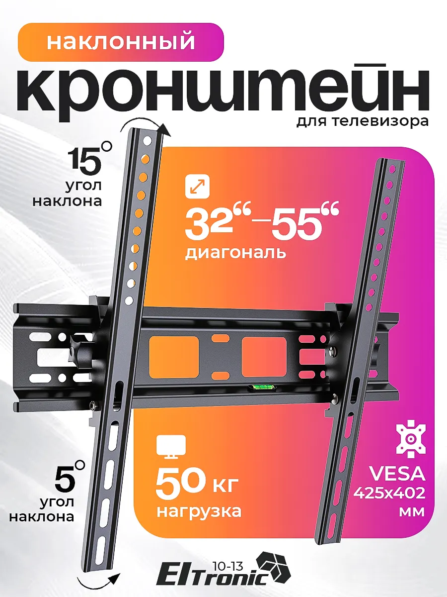 Надёжный и функциональный настенный кронштейн ELTRONIC предназначен для крепления телевизоров с диагональю от 32 до 55 дюймов. Он выполнен из прочного металла и рассчитан на нагрузку до 50 кг, что обеспечивает безопасность и устойчивость даже для крупногабаритных моделей.