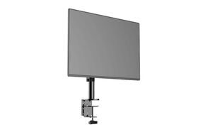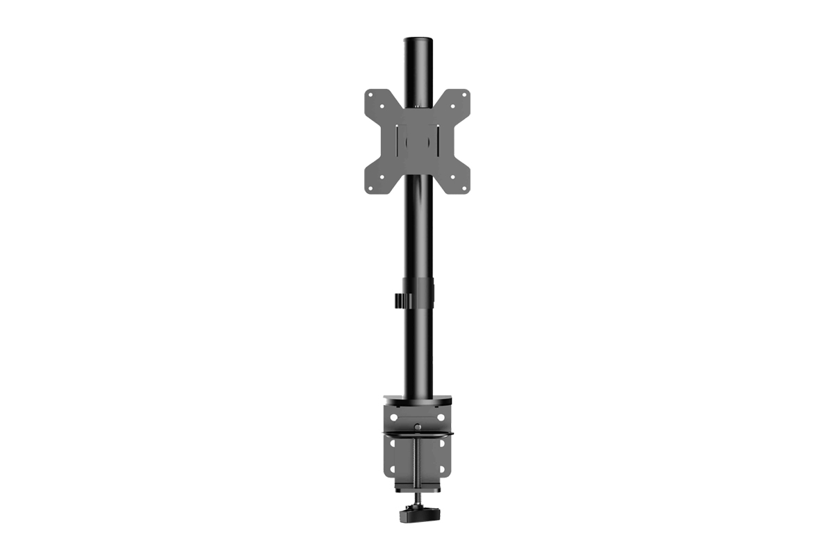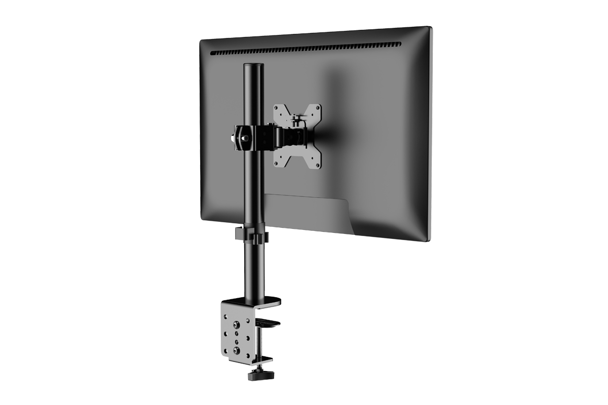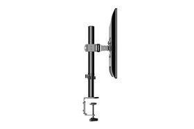 Настольный кронштейн для мониторов (телевизоров) обеспечивает надёжную фиксацию плоских и изогнутых дисплеев с диагональю от 13 до 32 дюймов, при условии общей весовой нагрузки до 10 кг. Крепление осуществляется непосредственно к рабочей поверхности стола – со специальным готовым отверстием или без него. Допустимая толщина столешницы – до 105 мм. Кронштейн позволяет регулировать угол наклона по вертикали (от –90° до +90°), по горизонтали (360°) и высоту вылета (на всю длину направляющей).