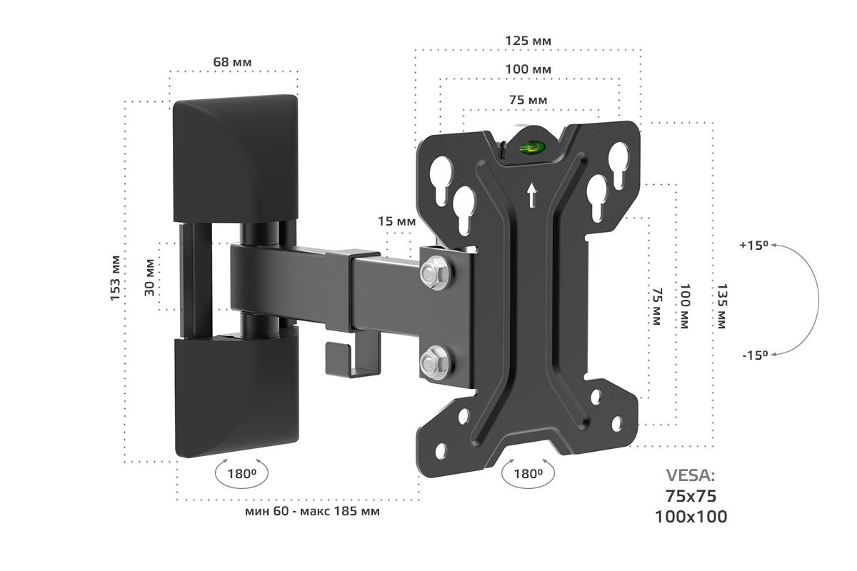 поддерживает ТВ с диагональю 10-32