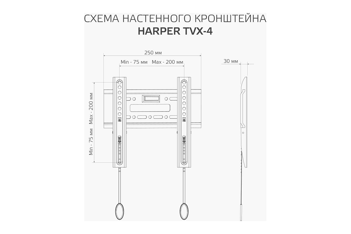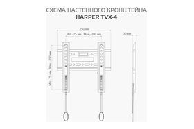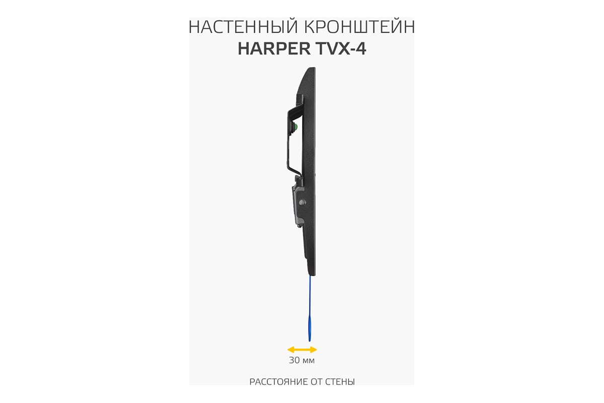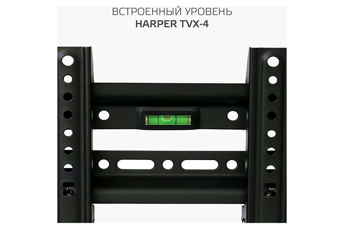 Фиксированный кронштейн Harper TVX-4 предназначен для установки LCD- и LED-телевизоров с диагональю от 17 до 43 дюймов и весом до 30 кг. Кронштейн поддерживает стандарты VESA до 200x200, что обеспечивает универсальность и совместимость с большинством популярных моделей телевизоров. Этот тип кронштейна особенно удобен, если вам не требуется регулировать угол наклона и вы предпочитаете расположить телевизор неподвижно в одном положении, параллельно стене. А тонкий профиль, всего 30 мм, делает кронштейн почти незаметным за вашим ТВ. Раздельная конструкция, состоящая из настенной плиты и вертикальных направляющих с системой быстрой фиксации, обеспечивает простую сборку, монтаж и удобную коммутацию кабелей. Для удобства монтажа кронштейн оснащен пузырьковым уровнем. Кронштейн Harper TVX-4 изготовлен из холоднокатаной стали, что обеспечивает его надежность и долговечность.