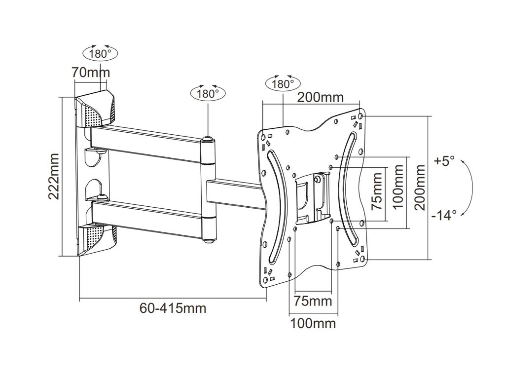 VESA: 75x75, 100x100, 200x100, 200x200 мм