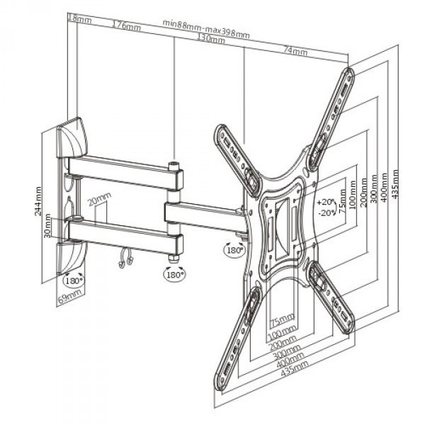 VESA: 75x75,100x100,200x100,200x200,400x200,300x300,400x400