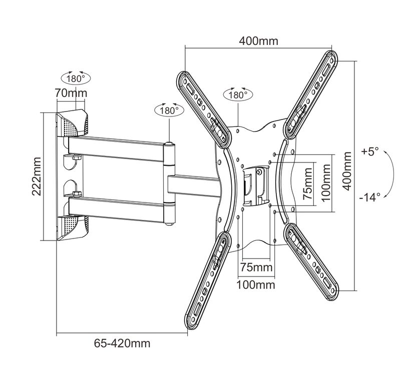 VESA: 75x75, 100x100, 200x100, 200x200, 400x200, 300x300, 400x400 мм