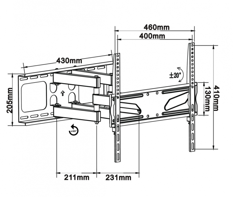 Для диагонали:26", 27", 30", 32", 37", 40", 42", 45", 46", 47", 50", 51", 52", 54", 55", 48", 49", 29", 28", 31", 33", 34", 35", 36", 38", 39", 41", 43", 44", 53" Тип:телевизионный Регулировка:наклонно-поворотный Стандарт VESA:400x400, 75x75, 100x100, 200x100, 200x200 Максимальная нагрузка:35 кг