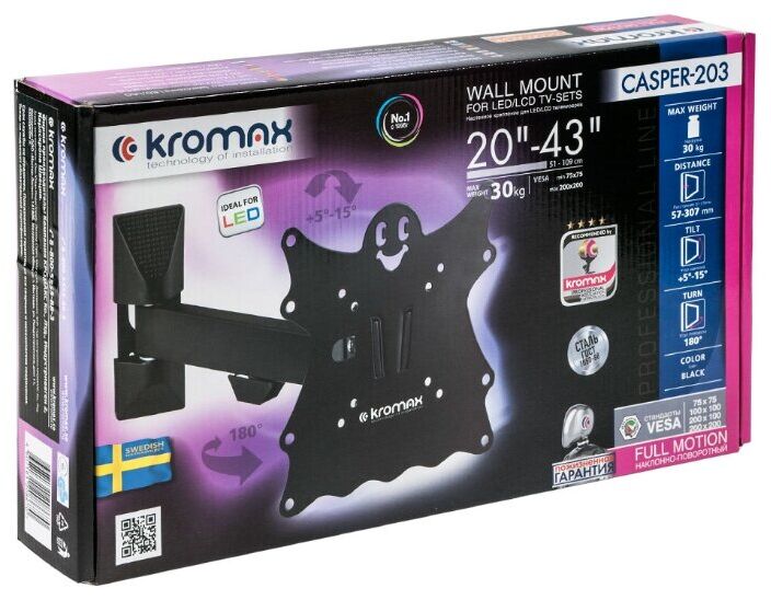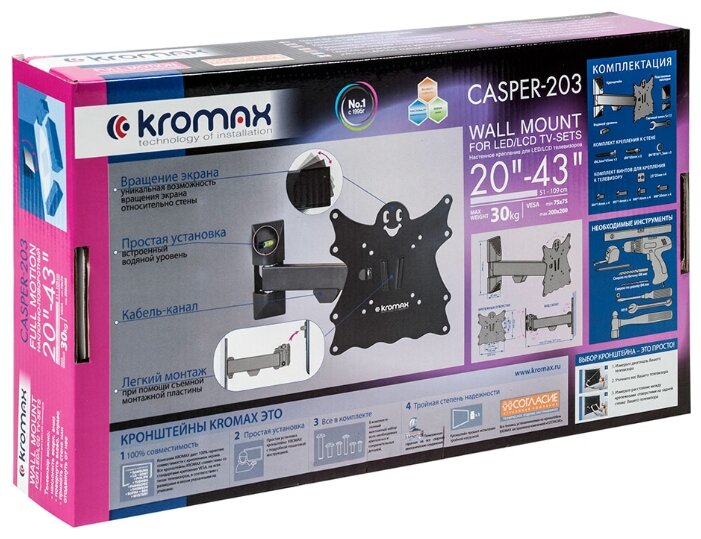 Описание: Наклонно-поворотный кронштейн для крепления к стене телевизоров и мониторов с не большой и средней диагональю экрана. Высококачественная стальная конструкция обеспечит надежное и безопасное использование. Легко снимающаяся монтажная пластина облегчит процесс уборки.