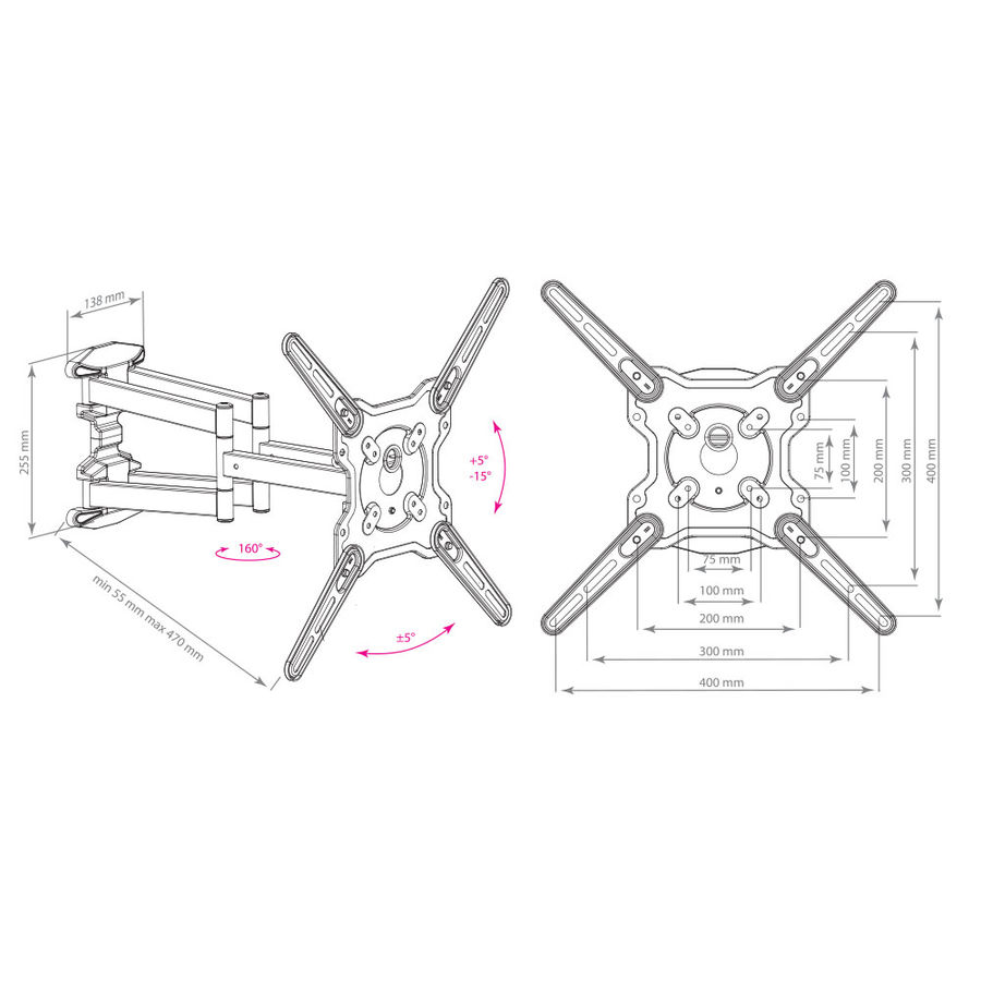 Поддержка крепления VESA 75×75, 100×100, 200×100, 200×200, 200×300, 300×200, 400×200, 300×300, 400×300, 400×400