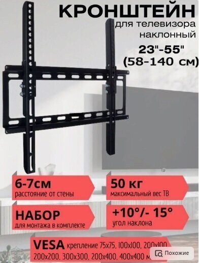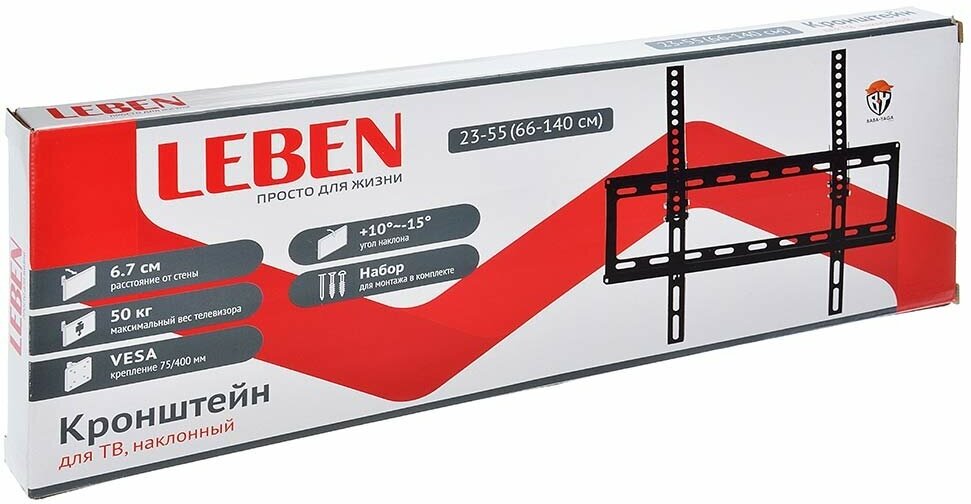 Наклонный настенный кронштейн Leben для телевизоров весом до 50 кг выполнен из нержавеющей стали. Допустимый размер экрана - 23"-55" дюйма (66-140 см). Эффективное использование наклонного кронштейна возможно даже в небольшом пространстве. Поворотный Кронштейн позволяет менять положение телевизора в вертикальной плоскости. Вы сможете легко опустить ТВ или наоборот поднять его, чтобы обеспечить комфортный просмотр фильма всем присутствующим. Угол наклона держателя +10°/- 15°, расстояние от стены 6,7 см. С монтажом кронштейна на стену справится любой, так как инструкция и набор для монтажа в комплекте.