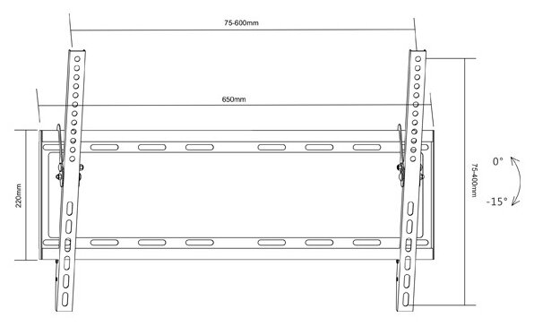 Надежный кронштейн с функцией наклона. Поддержка VESA 600х400, что позволяет устанавливать телевизоры до 70". Крепкая стальная конструкция держит вес до 55кг.