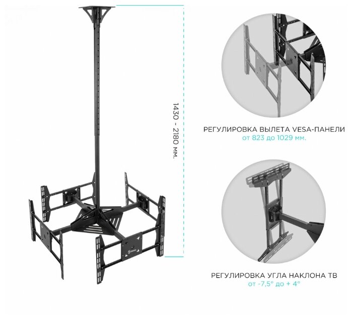 Дополнительная информация: Максимальный выдерживаемый вес для каждого из четырех экранов составляет 36 кг.