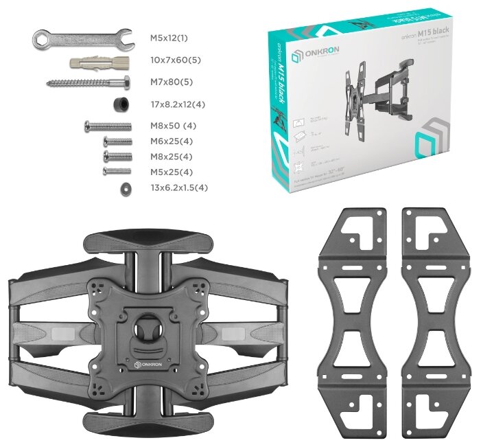 Дополнительная информация: угол наклона: -5° - +8°, угол поворота: 140°, вылет от стены: 49-491 мм, корректировка экрана по горизонтали -3°/+3°, материал: холоднокатаная сталь, SPCC class
