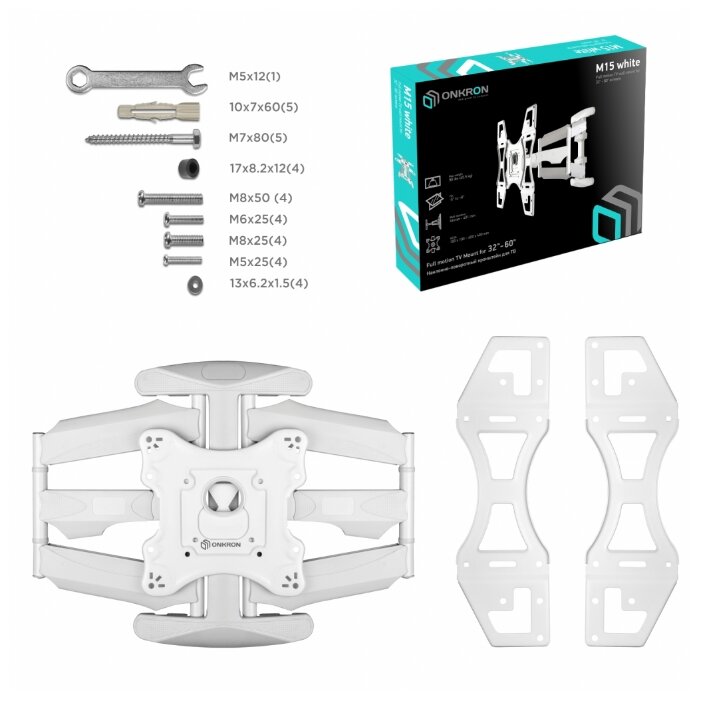 Дополнительная информация: угол наклона: -5° - +8°, угол поворота: 140°, вылет от стены: 49-491 мм, корректировка экрана по горизонтали -3°/+3°, материал: холоднокатаная сталь, SPCC class