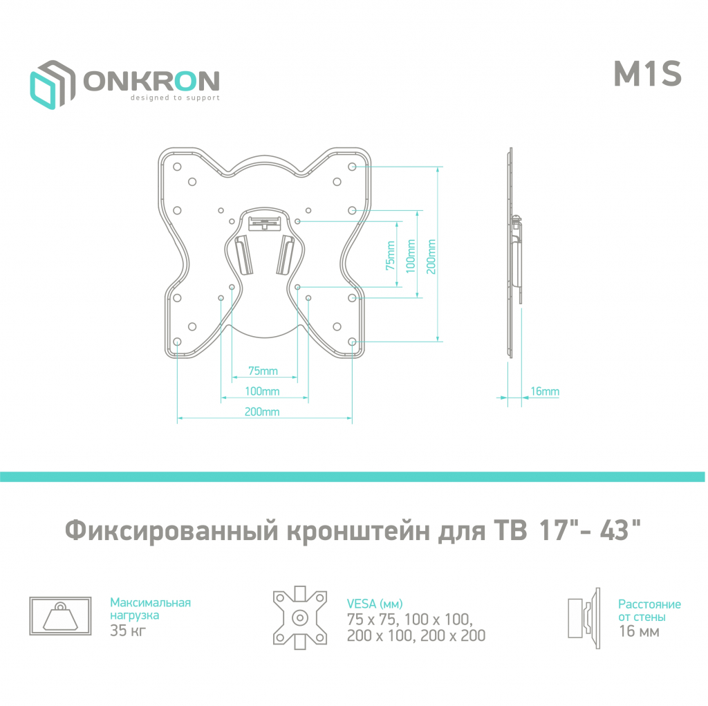 Дополнительная информация: вылет от стены: 16 мм; материал: холоднокатаная сталь (SPCC class)
