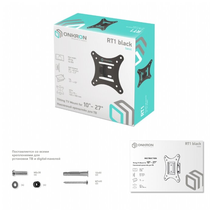 Дополнительная информация: угол наклона -5° +15°; вылет от стены 30-43 мм; материал: холоднокатаная сталь (SPCC class)