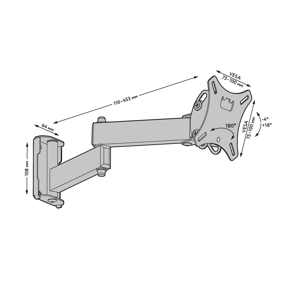 Угол наклона -4°...+18°