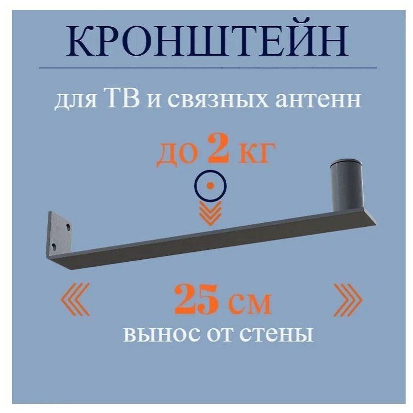 Стеновой кронштейн для крепления ТВ-антен, вынос - 25 см, размеры опорной площадки, мм: 40х30, полезная высота крепления, мм: 40, диаметр зажимаемой трубы, мм: 28, форма упаковки - пакет.