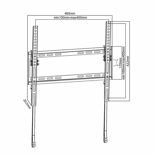 Стандарт Vesa 100x100 мм, 200x100 мм, 200x200 мм, 200x300 мм, 200x400 мм, 300x200 мм, 300x300 мм, 300x400 мм, 400x200 мм, 400x300 мм, 400x400 мм