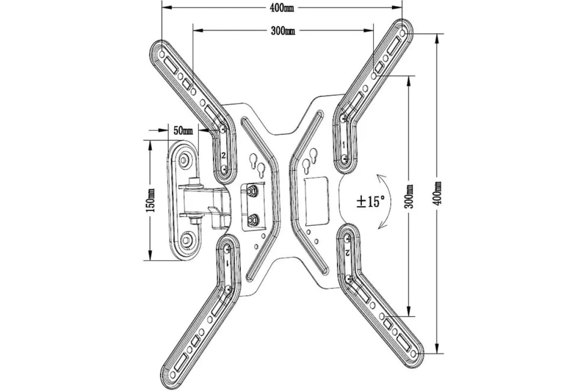 Крепежные отверстия (VESA) 75x75.1x100.2x200, 300x300.4x400 мм