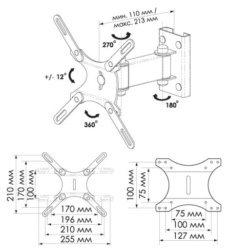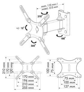 Стандарт Vesa: 100x100, 200x100, 200x200, 100x200, 75x75