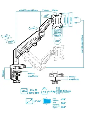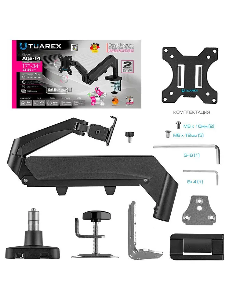 Настольный кронштейн для мониторов, комплект ключей и крепежа для установки, подробная инструкция на русском языке